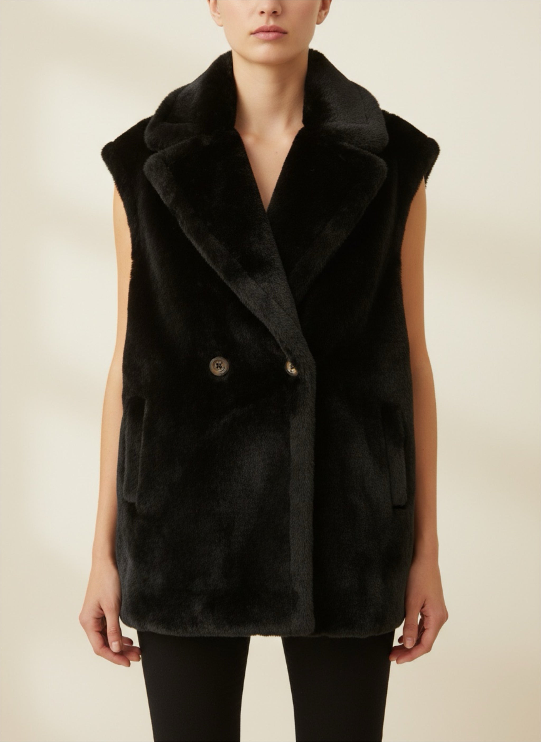Chaleco pelo sintético negro cruzado