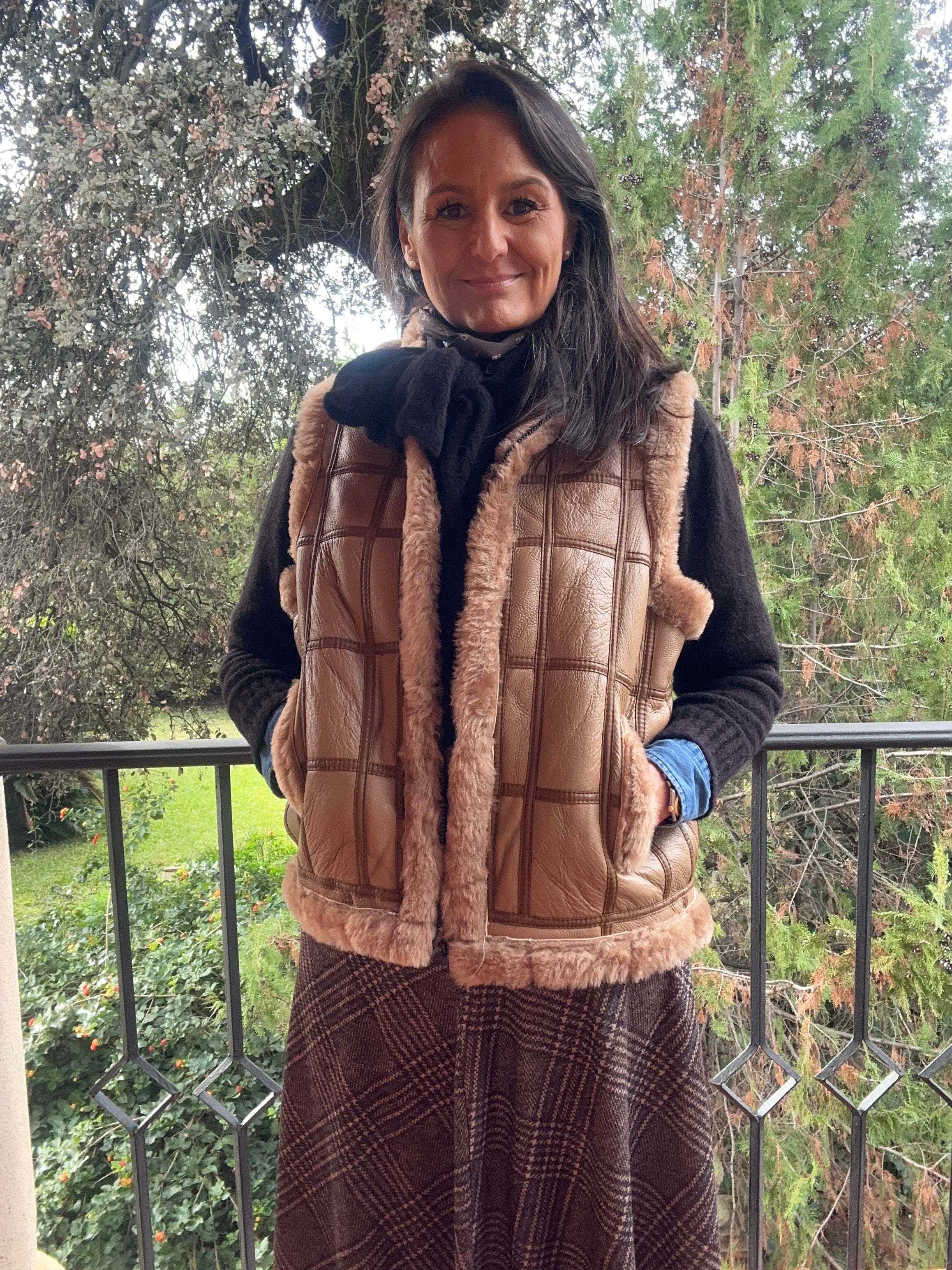 Chaleco de piel cuadrícula